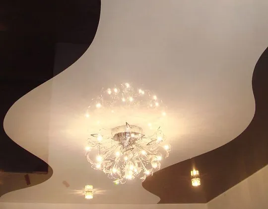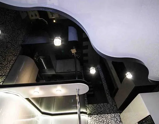 • Двухуровневые. Мы можем смонтировать прямо- и криволинейные уровни, разнообразив оригинальной подсветкой по периметру, контуру или точечно.